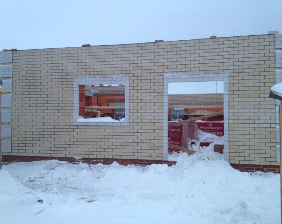 - С замораживанием кладки. В ней изначально используется слегка подогретый раствор, который начинает твердеть еще в процессе нанесения. Без обогрева он быстро схватывается и замерзает, а конечную 100% прочность набирает только весной – с потеплением.